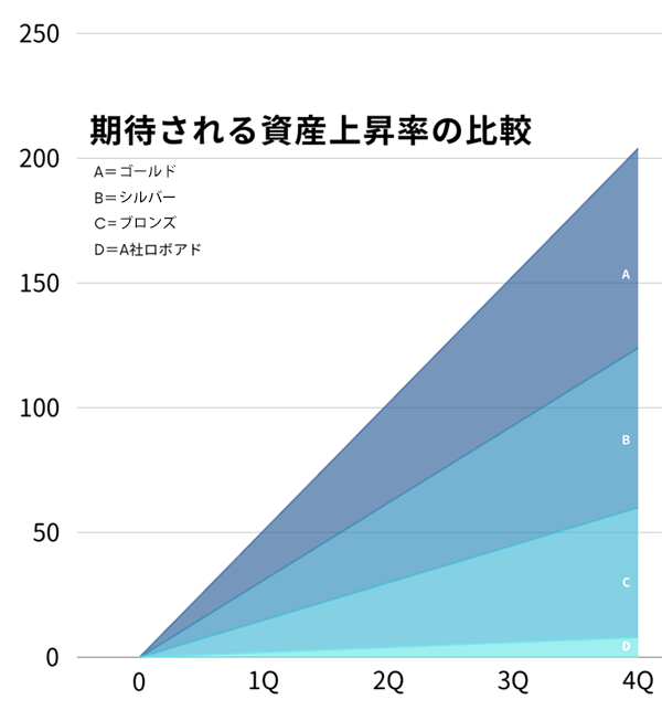 予算や期待収益率やリスク許容度に応じて3つのバリエーションからAIを選べるため、初心者からベテランまで幅広くご愛用頂けます。